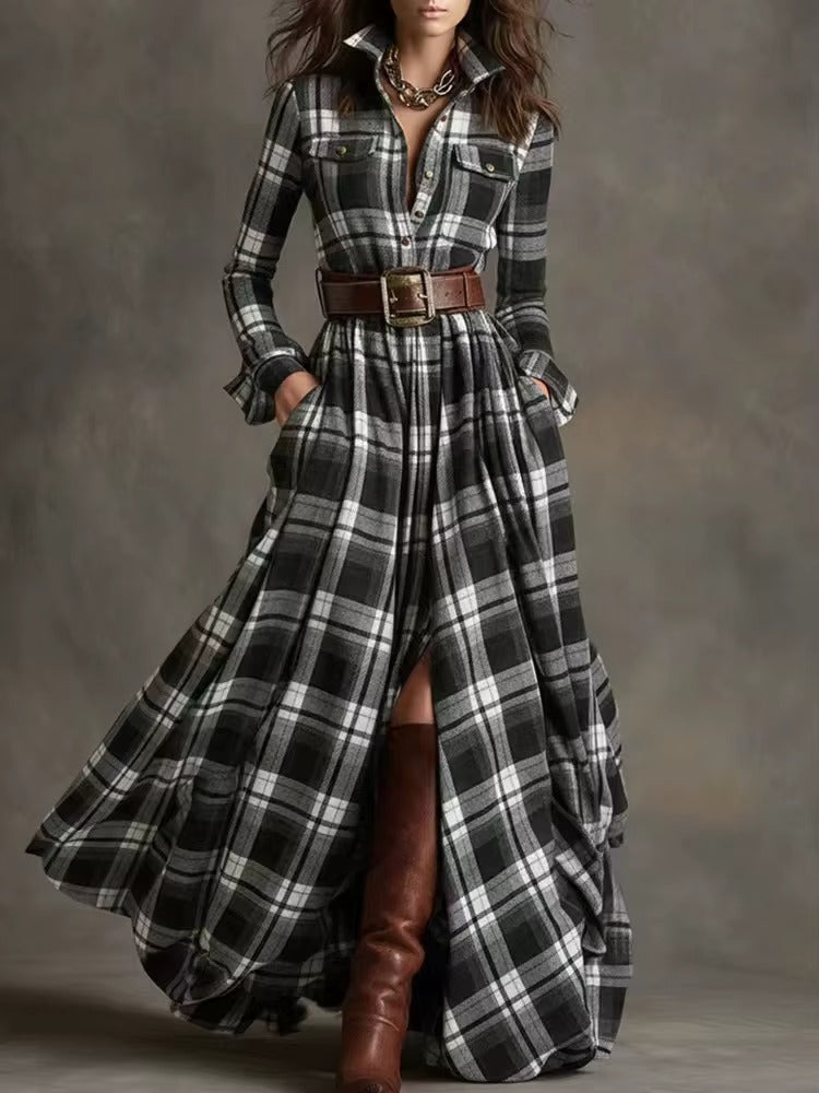 Amalia | Tijdloze Maxi Jurk met Klassieke Ruit